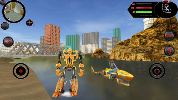 变形金刚大黄鲨游戏是一款模拟汽车人的变形游戏,玩家将在游戏中扮演超级英雄大黄鲨,大黄鲨可以变换成鲨鱼机器人和战斗机器人,还有不一样的地图和海底世界,在陆地打击罪犯,在海底追击罪犯的小船,让罪犯无路可逃,变成战斗机器人还可以飞行哦,罪犯真是上天无门,入地无路啊。