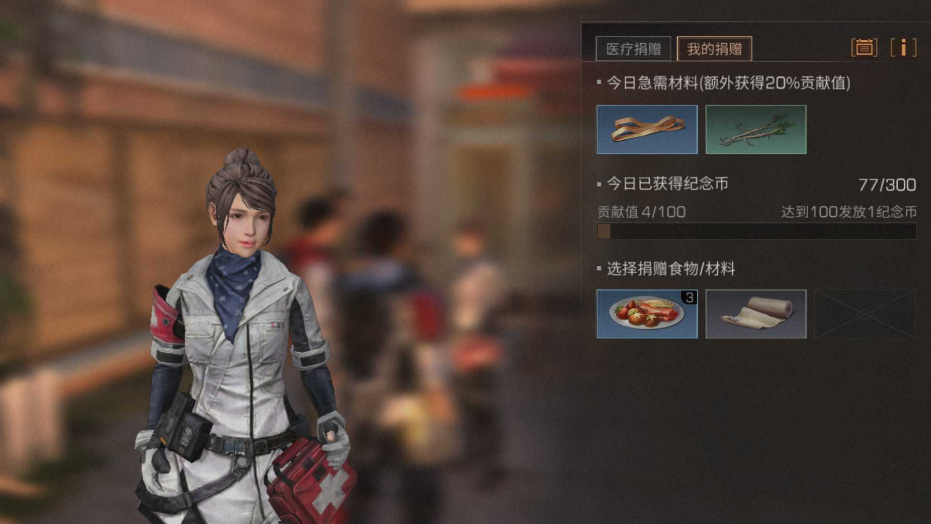 在快乐101玛蒂尔达的旁边有个医疗人员多柯特,可以向她捐赠物品,每日会有两种急需的材料,捐赠急需材料会额外获得20%的贡献值,每达到100贡献值会赠送一个纪念币。